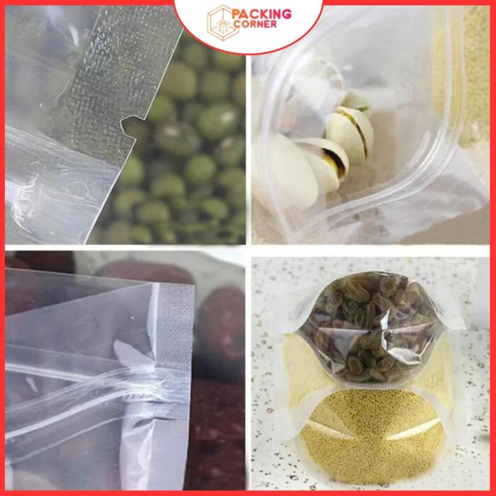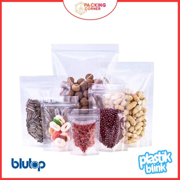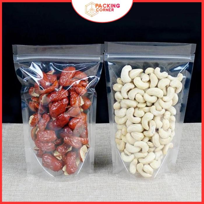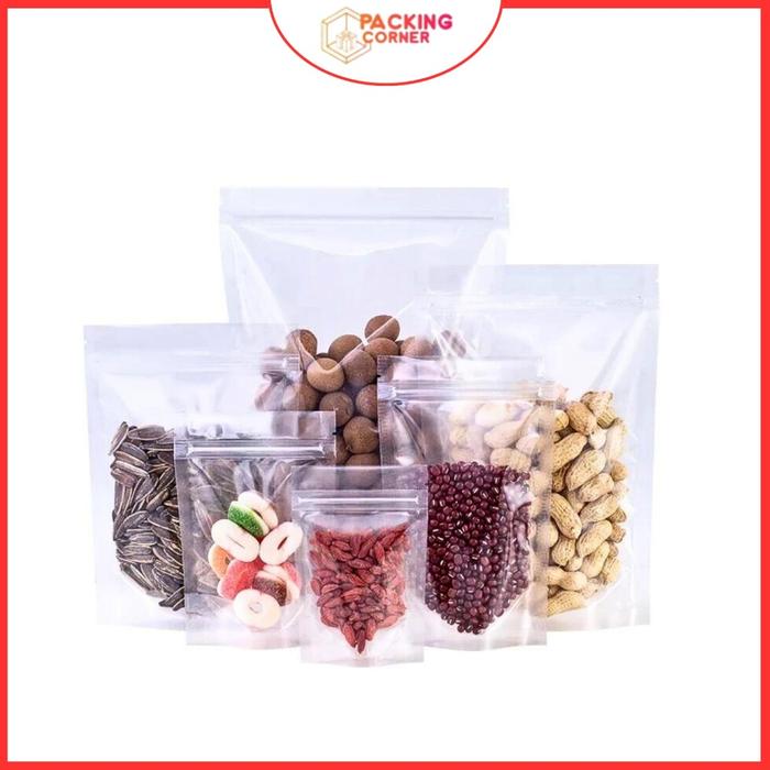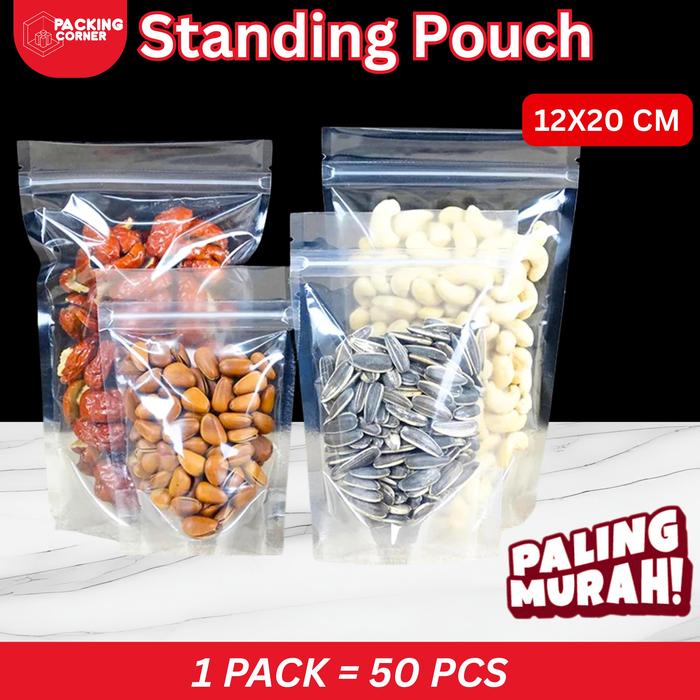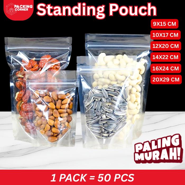 DP 0 50 PCS PLASTIK KAN SNACK MAKANAN KLIP PP BERDIRI STANDING POUCH BENING TRANSPARAN DOUB