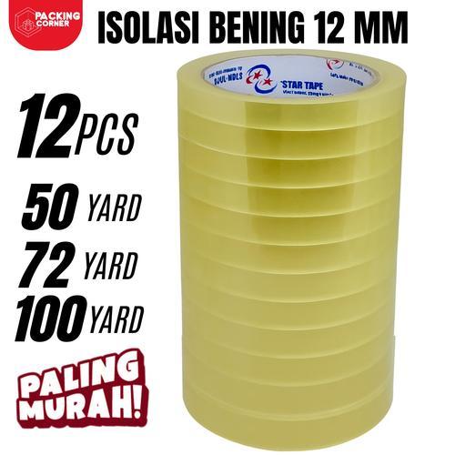 DP 0 12 PCS ISOLASI 12MM 50 72 100 YARD LAKBAN BENING 12 INCH INCI OPP PLAKBAN ATK TAPE PER