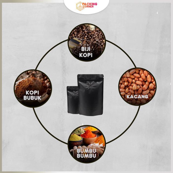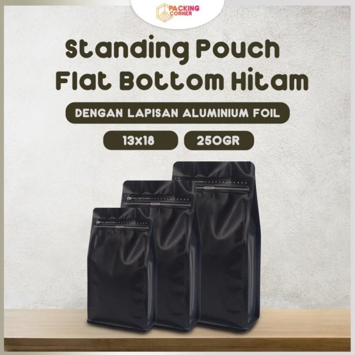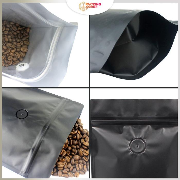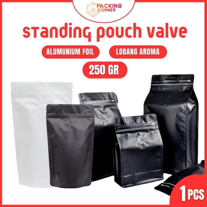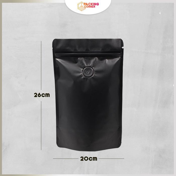 DP 0 STANDING POUCH HITAM PAPER VALVE 20X26 CM ALUMUNIUM FOIL METALIZED 13X20 PUTIH