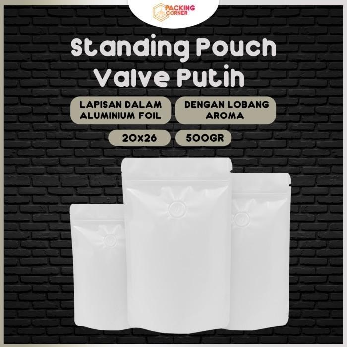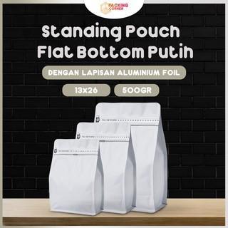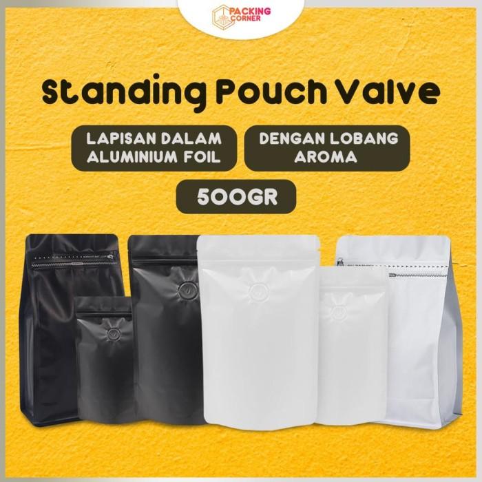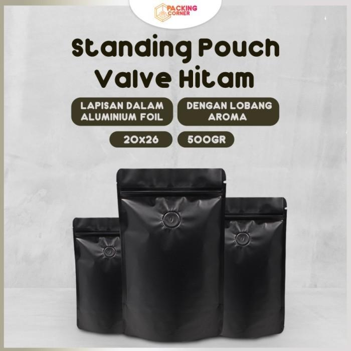 DP 0 STANDING POUCH VALVE PLASTIK KLIP KAN KOPI ZIP FLAT BOTTOM 500 GR 13X26 HITAM