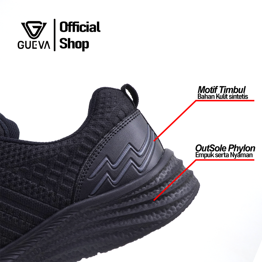 GUEVA 062 Sepatu Sekolah Hitam Polos SMP SMA SMK KULIAH Lari Hitam Jogging Running