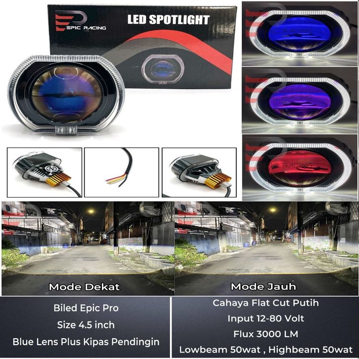 headlight Epicracing- Biled Epic PRO 4.5 inc Blue lens Lengkap Dengan Shroud Dan Kipas