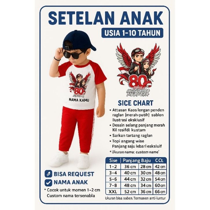 Promo Baju Set Anak HUT RI Setelan Anak Laki Laki Kemerdekaan Lengan Pendek Set Celana Panjang Garuda Agustusan