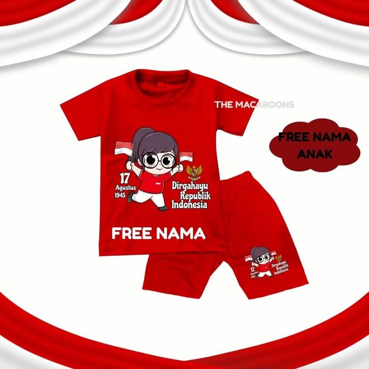 Promo Baju Set Anak HUT RI FREE NAMA Setelan Anak 17 Agustus Umur 1 - 10 Tahun Stelan Kemerdekaan Indonesia Acara Pawai