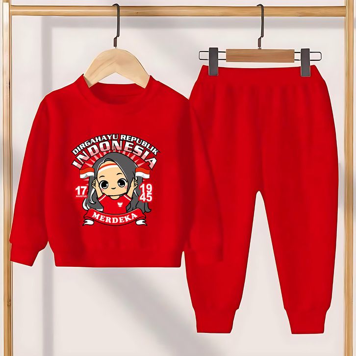 Promo Baju Set Anak HUT RI Setelan Baju Anak 17 Agustus 1945 Merdeka / Kemerdekaan Hut Ri/ Usia 1-10 Tahun / Unisex