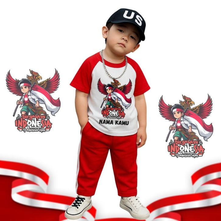 Promo Baju Set Anak HUT RI Setelan Anak Laki Laki Kemerdekaan Lengan Pendek9ratis Nama Set Celana Panjang Garuda Agustu