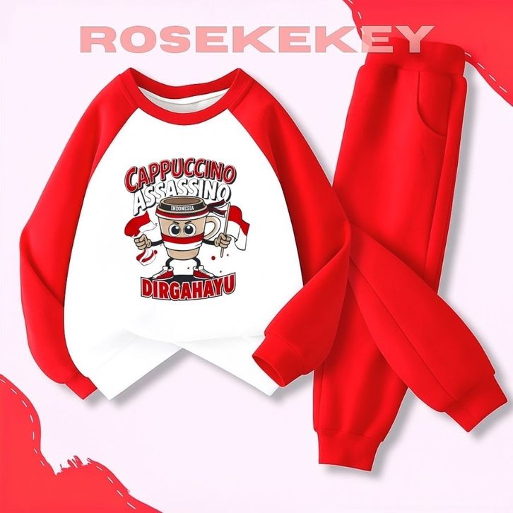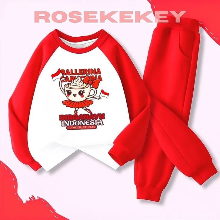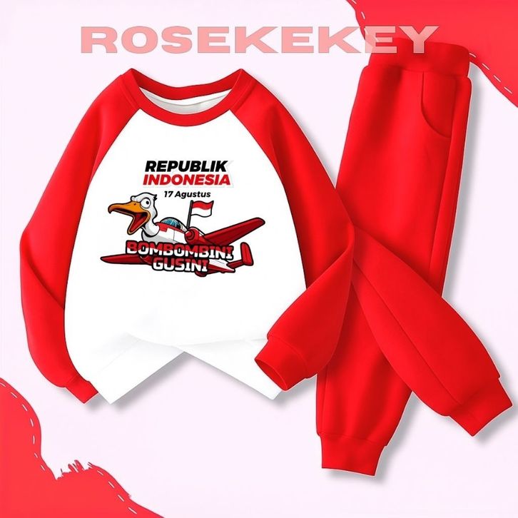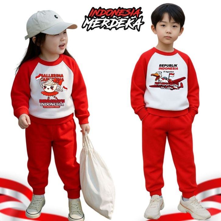 Promo Baju Set Anak HUT RI Setelan Anak Kemerdekaan 17 Agustusan Lengan Reglan Motif Anomali Cewe Cowo Usia 3-12 Tahun