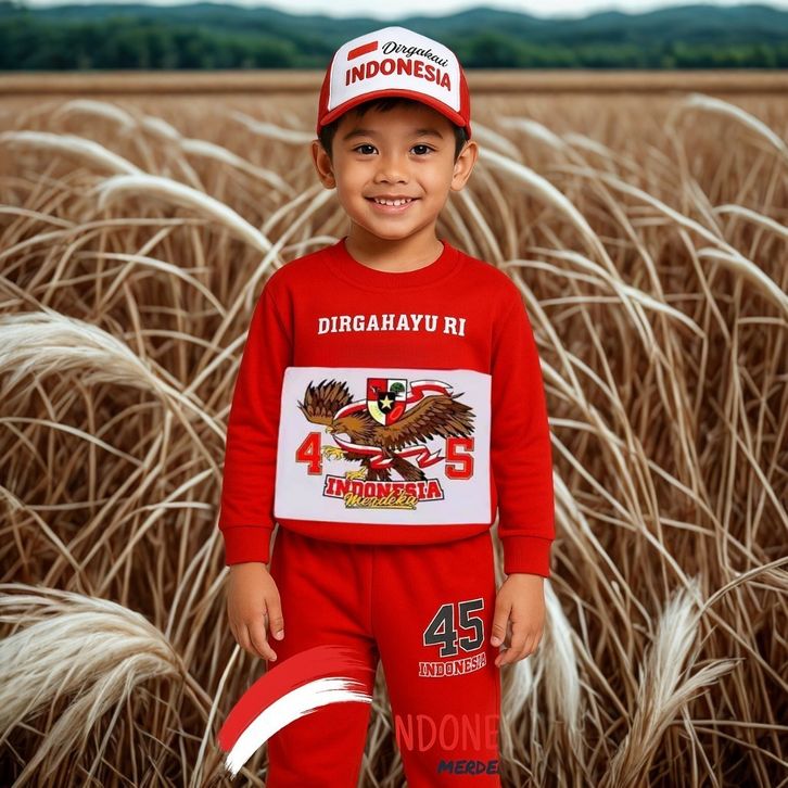 Promo Baju Set Anak HUT RI Setelan Anak Perempuan Laki Kemerdekaan Panjang Kaos Putih Baju Merah Agustusan Celana Indon