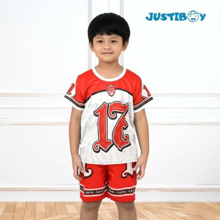 Promo Baju Set Anak HUT RI Setelan Anak Laki Laki Jersey Merah Putih 17 Agustus Lengan Pendek Gambar Full Printing 2 -