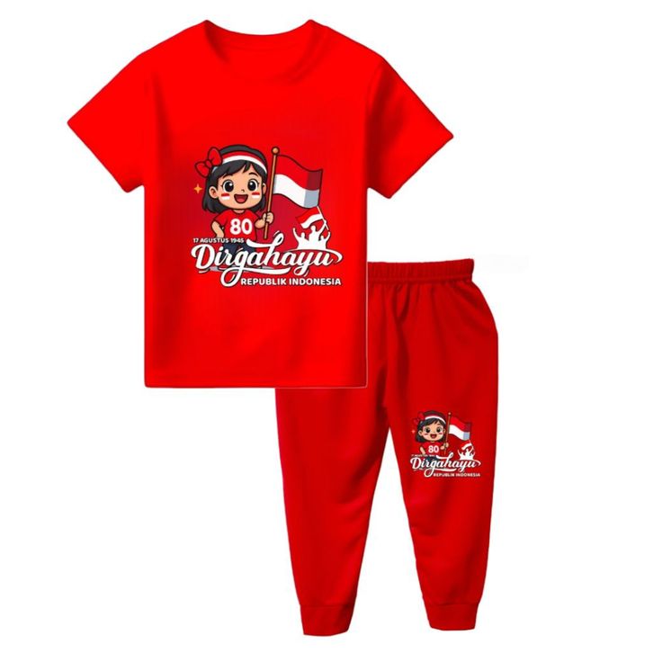 Promo Baju Set Anak HUT RI Setelan Anak Unisex Perempuan-Laki-laki.1-11 Tahun-Motif 17 Agustus Indonesia Kemerdekaan.