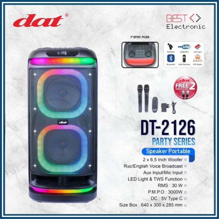 SPEAKER AKTIF PORTABLE DUO 6.5 INCH DAT DT 2126 PARTY DT2126 DT-2126 BLUETOOTH