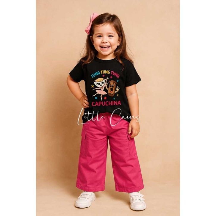 Promo Baju Anak Anomali Setelan Anak Perempuan Usia 1-12 Tahun Kaos Ballerina X TUNG TUNG Sahur Dan Celana Panjang Outf