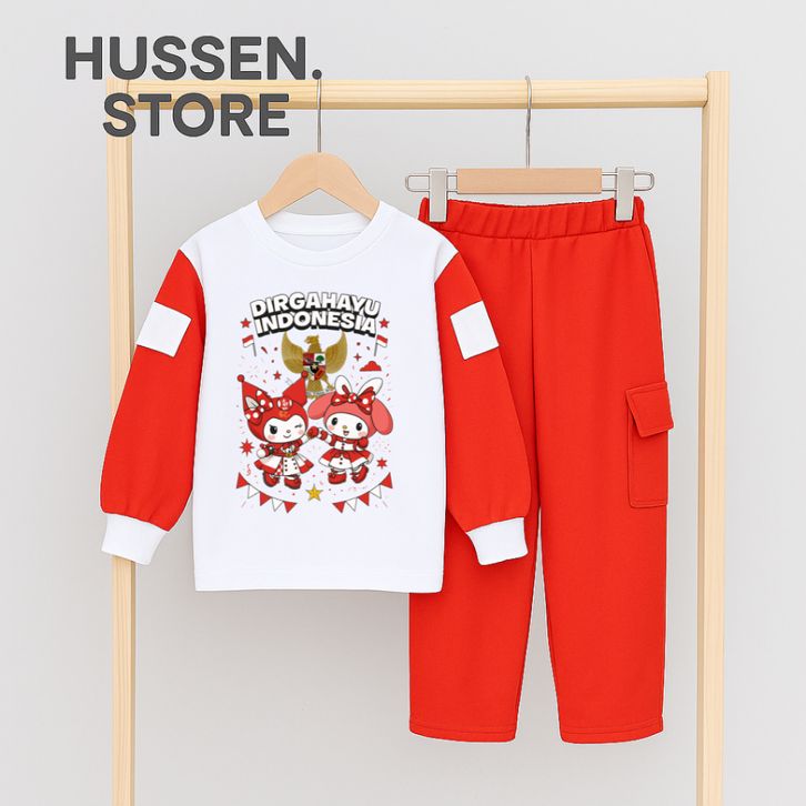 Promo Baju Anak Anomali Setelan Anak Perempuan Kemerdekaan Agustusan Kuromi dan Melody One Set Cargo Independent Day Un