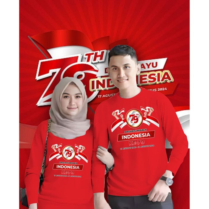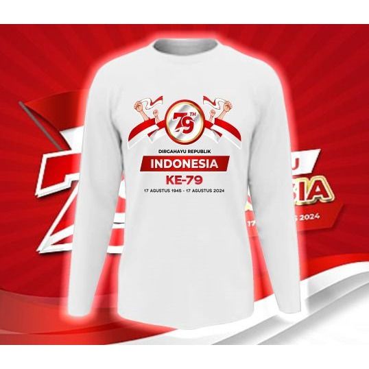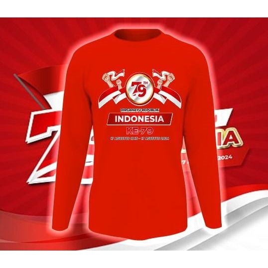 Baju Atasan Kaos Cewek-Cowok LENGAN PANJANG MERDEKA TANGAN AGUSTUSAN TAHUN 79 DEWASA UK M L XL XXL