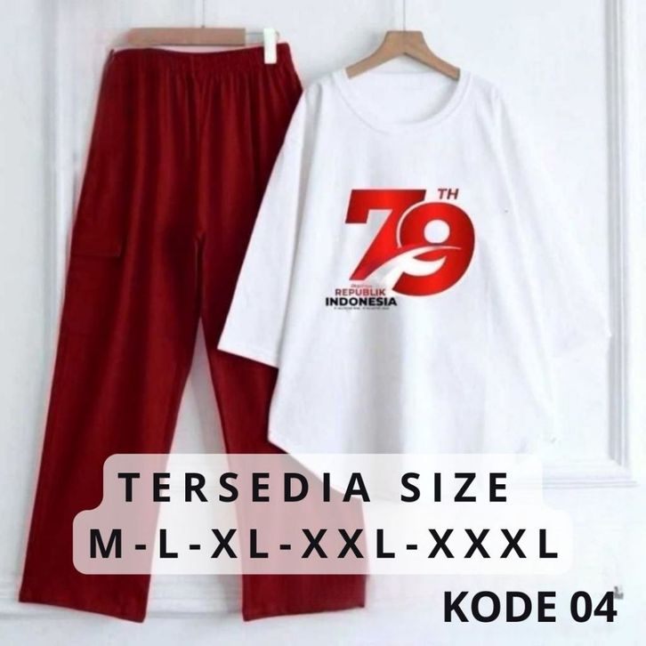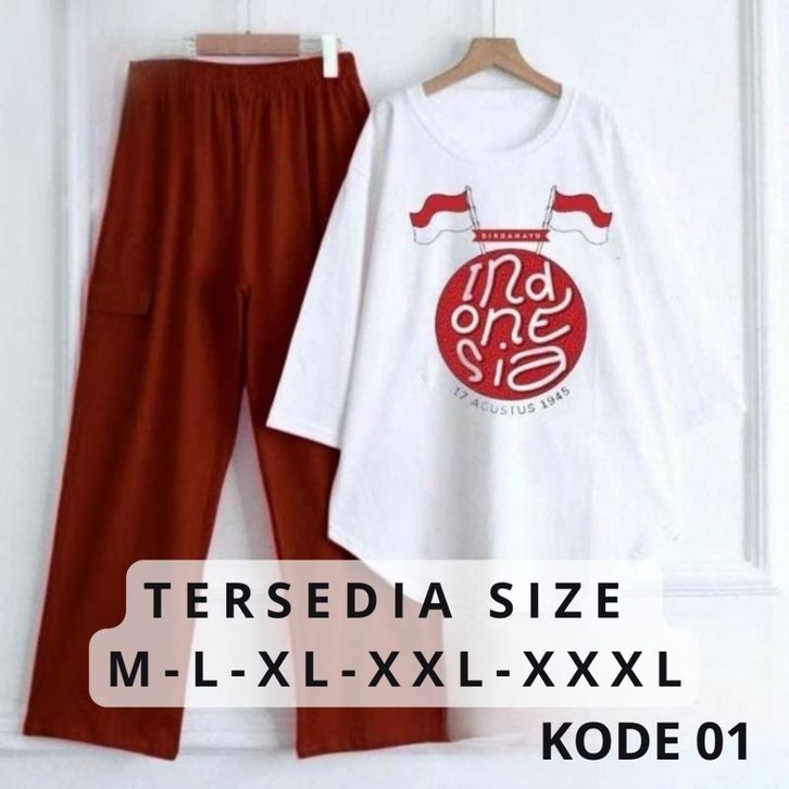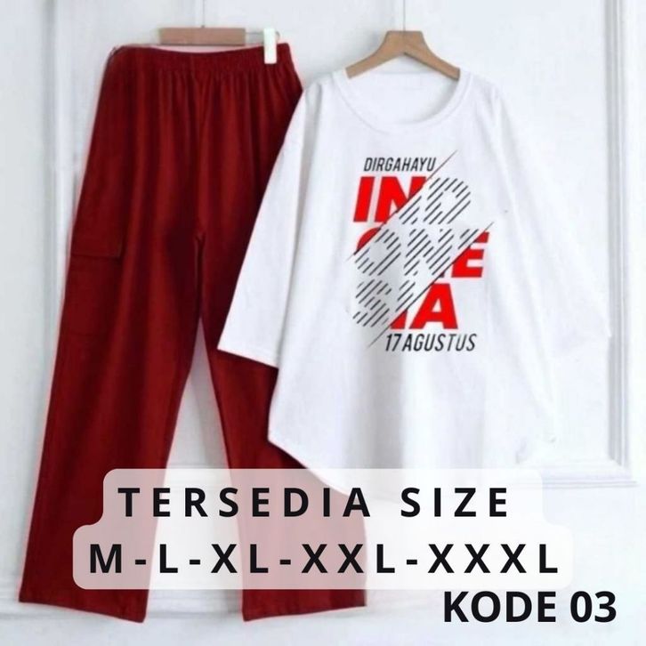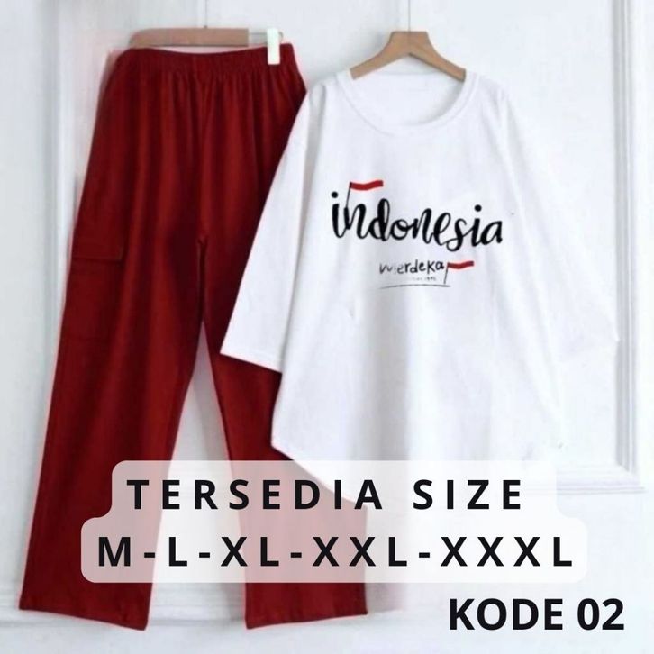 Promo Baju Agustus Baju Setelan HUT RI One Set Merah Putih BO Bahan Kaos Katun Combed 24s Aplikasi Sablon Premium Dapat