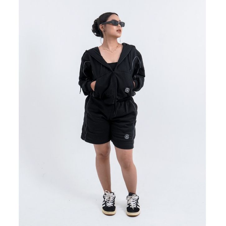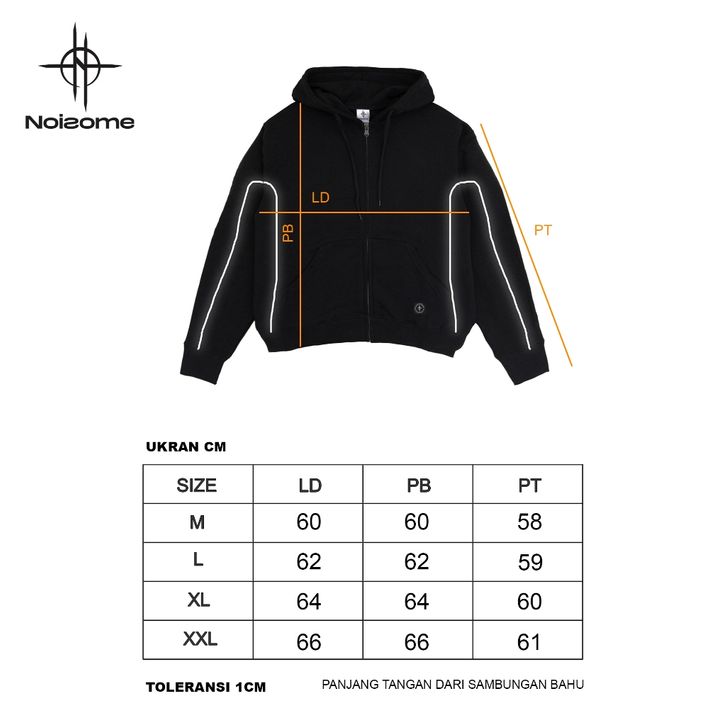 Hoodie pria Zipper Boxy Reflective - Revenge - Hitam Noisome