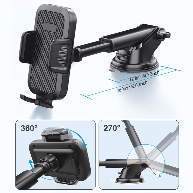 Holder HP Jepit Serbaguna – Putar 360°, Bisa di Meja & Mobil