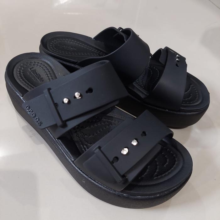 FLASH SALE CROCS BROOKLYN BUCKLE WEDGE CROCS WEDGES SANDAL WANITA CROCS HITAM W5