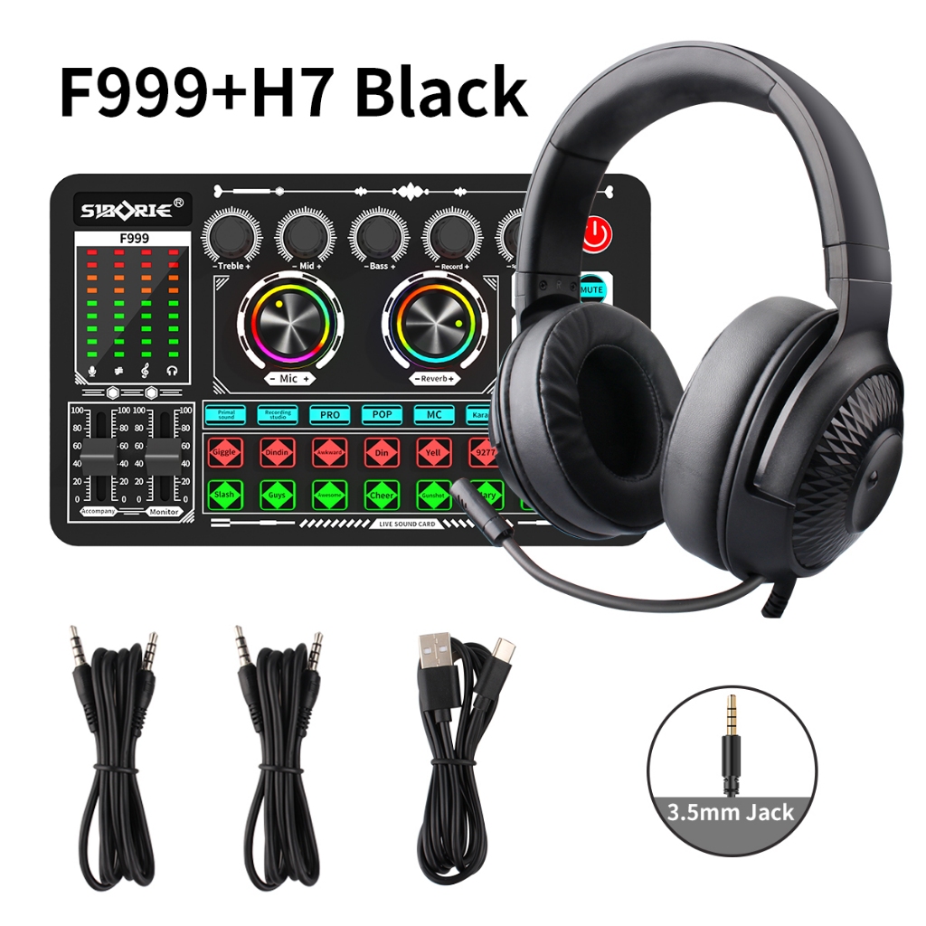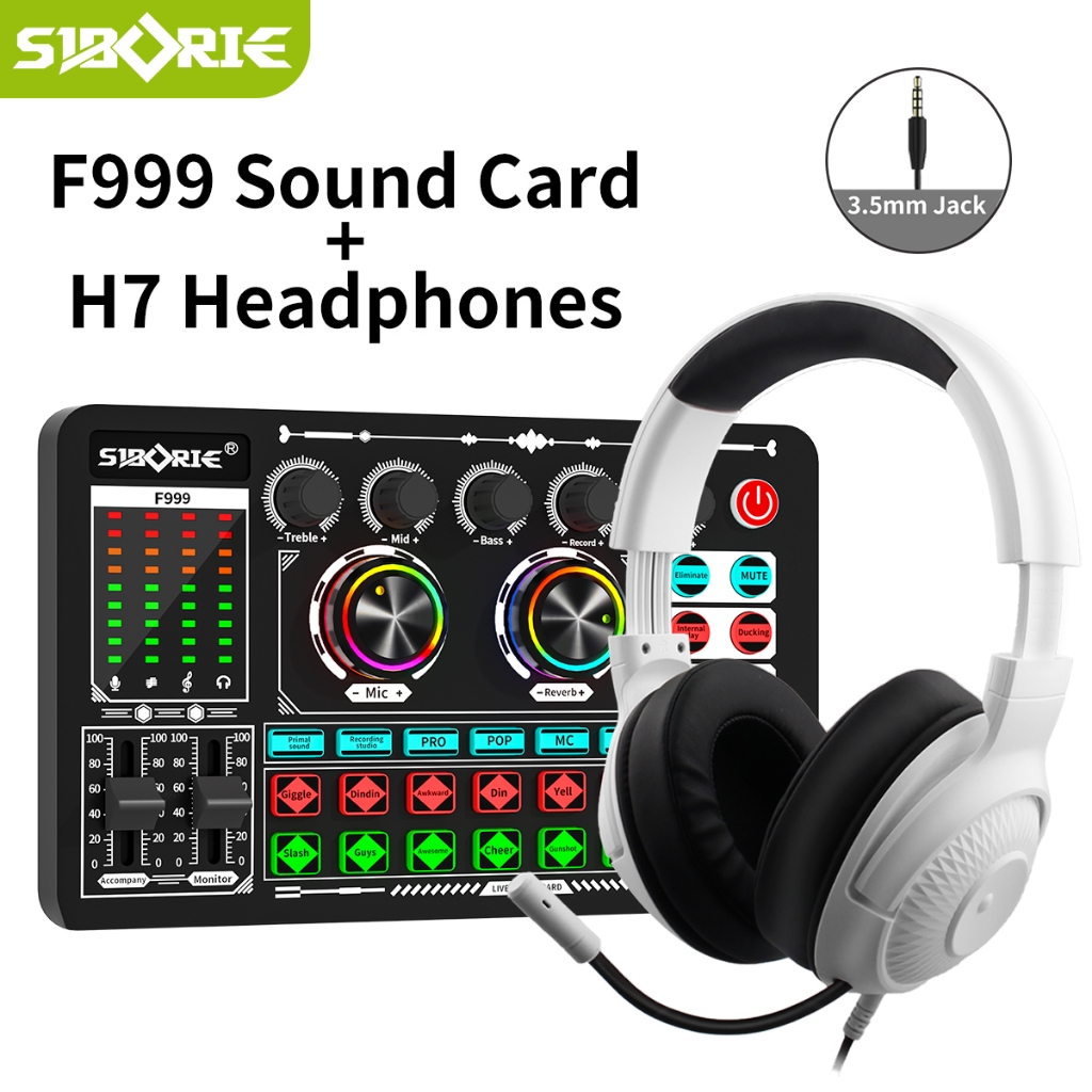 Siborie [] F999+H7 paket lengkap soundcard earphone mic 3 in 1 for Streaming Langsung