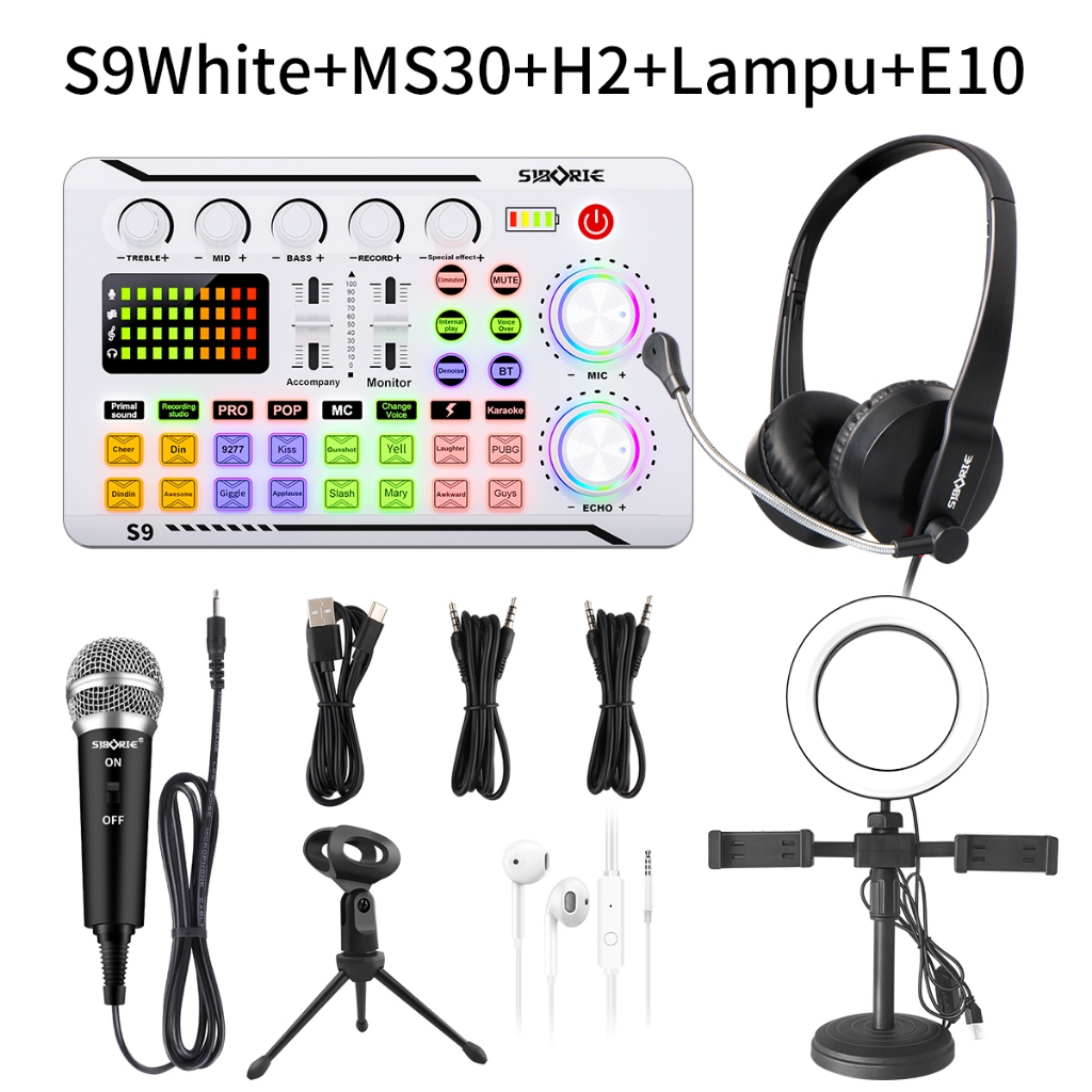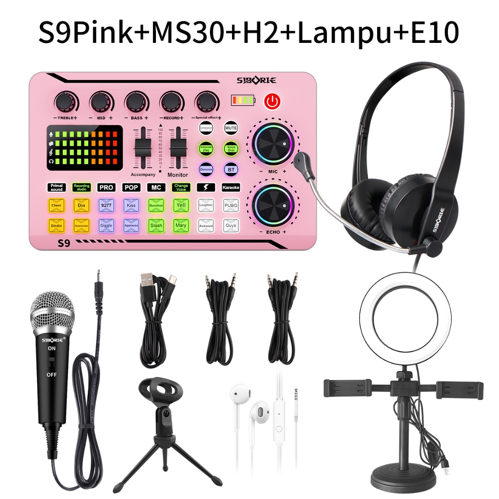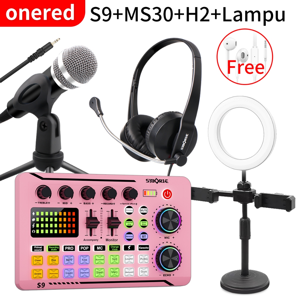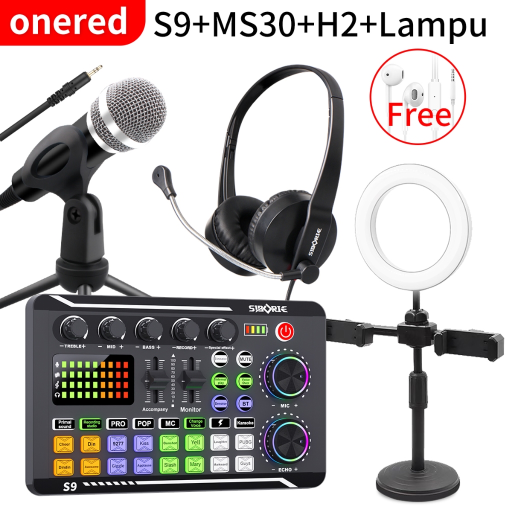 Onered【Free Headset】S9 Soundcard + MS30 Mic +H2 Headphone + Lampu Paket Lengkap Soundcard Bluetooth Streaming Langsung Siap