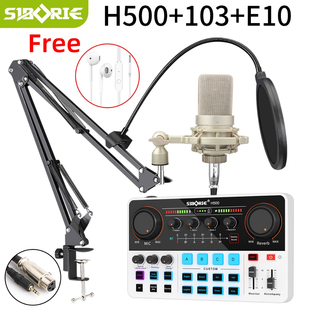 Siborie Free headset Paket Komplit H500 soundcard+103 mic+E10 headset Full set 3 in 1 Siap