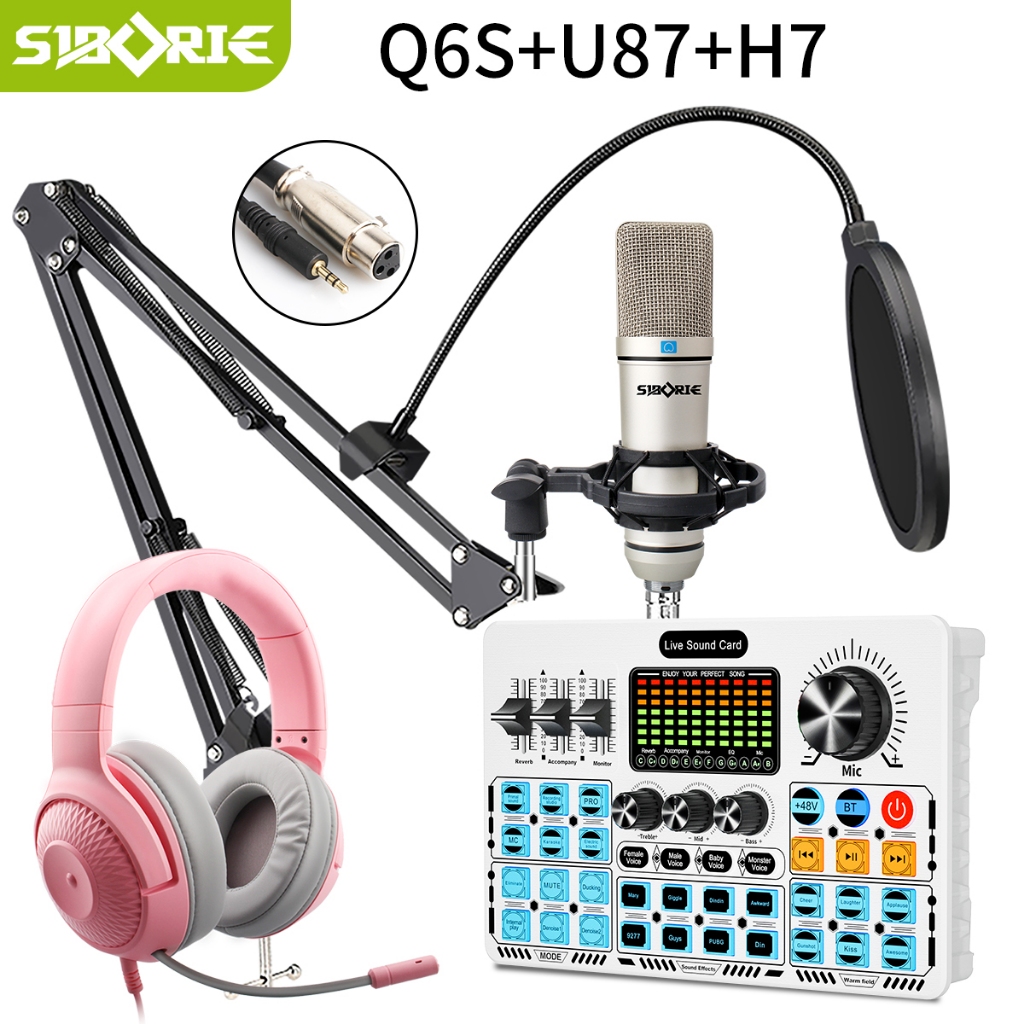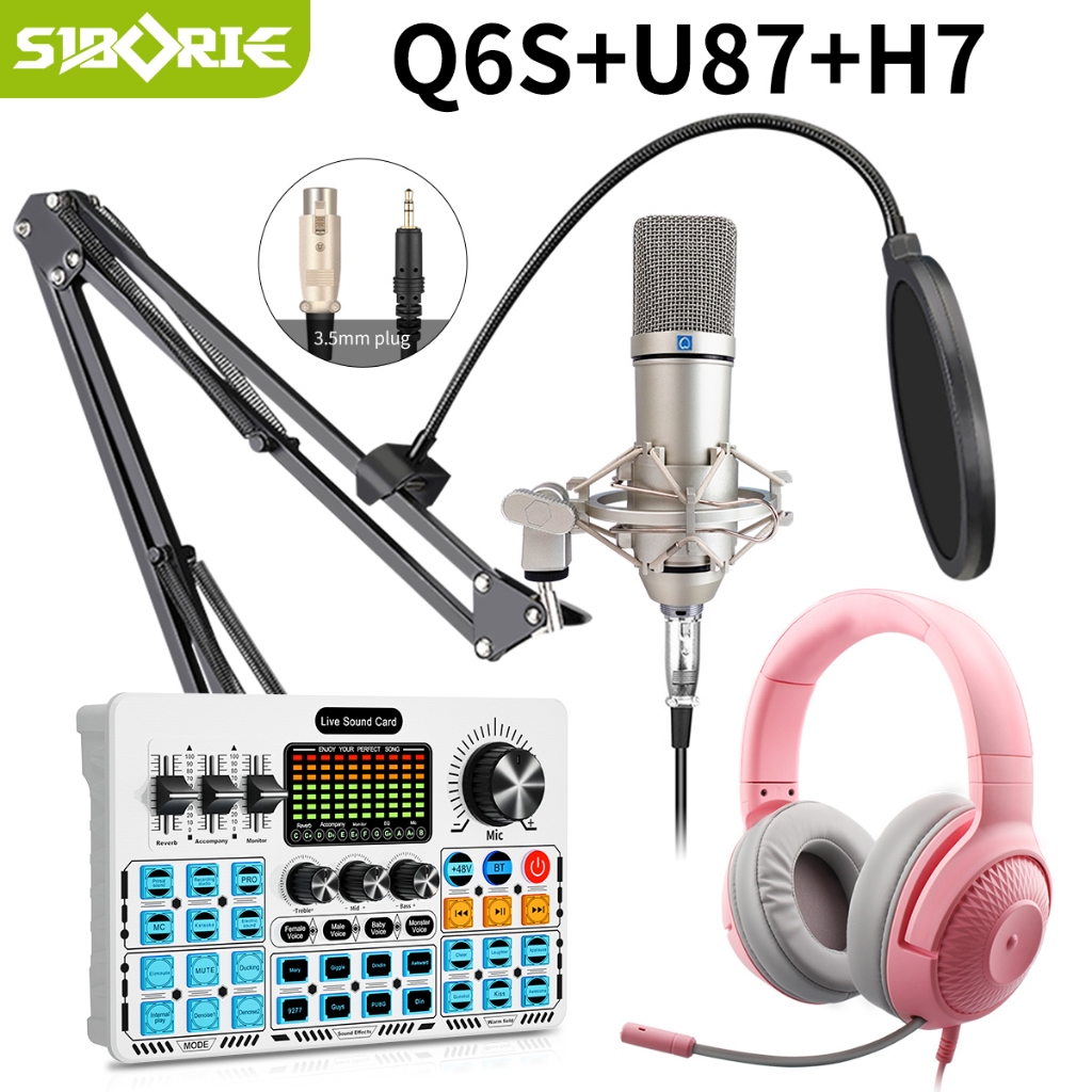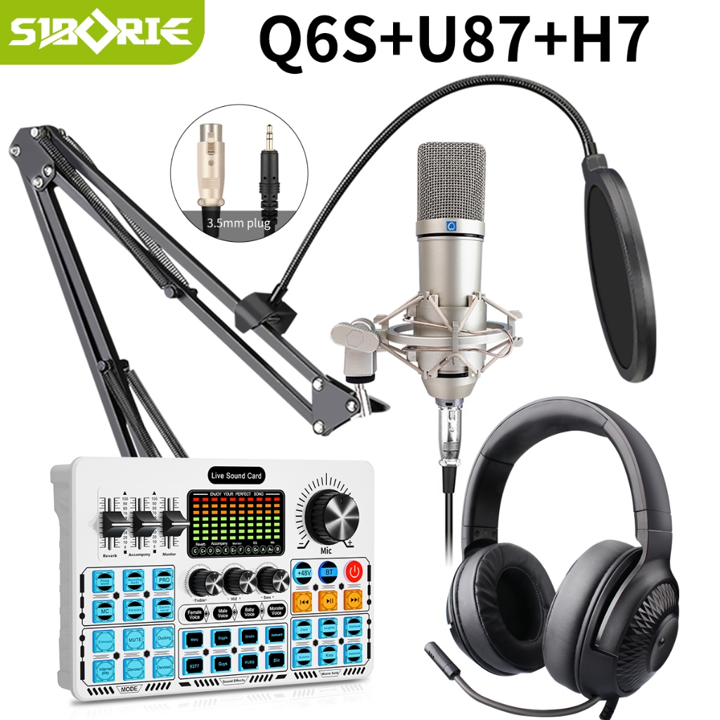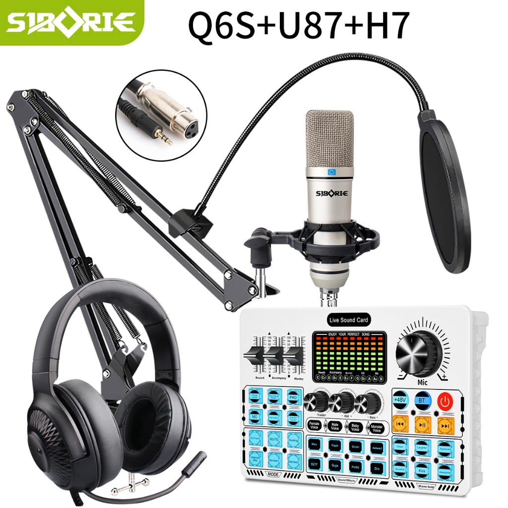 Siborie【】Q6S+U87+H7 Paket lengkap sound card headset mic 3 in 1 set for Streaming Langsung Satu set dudukan lengkap gratis