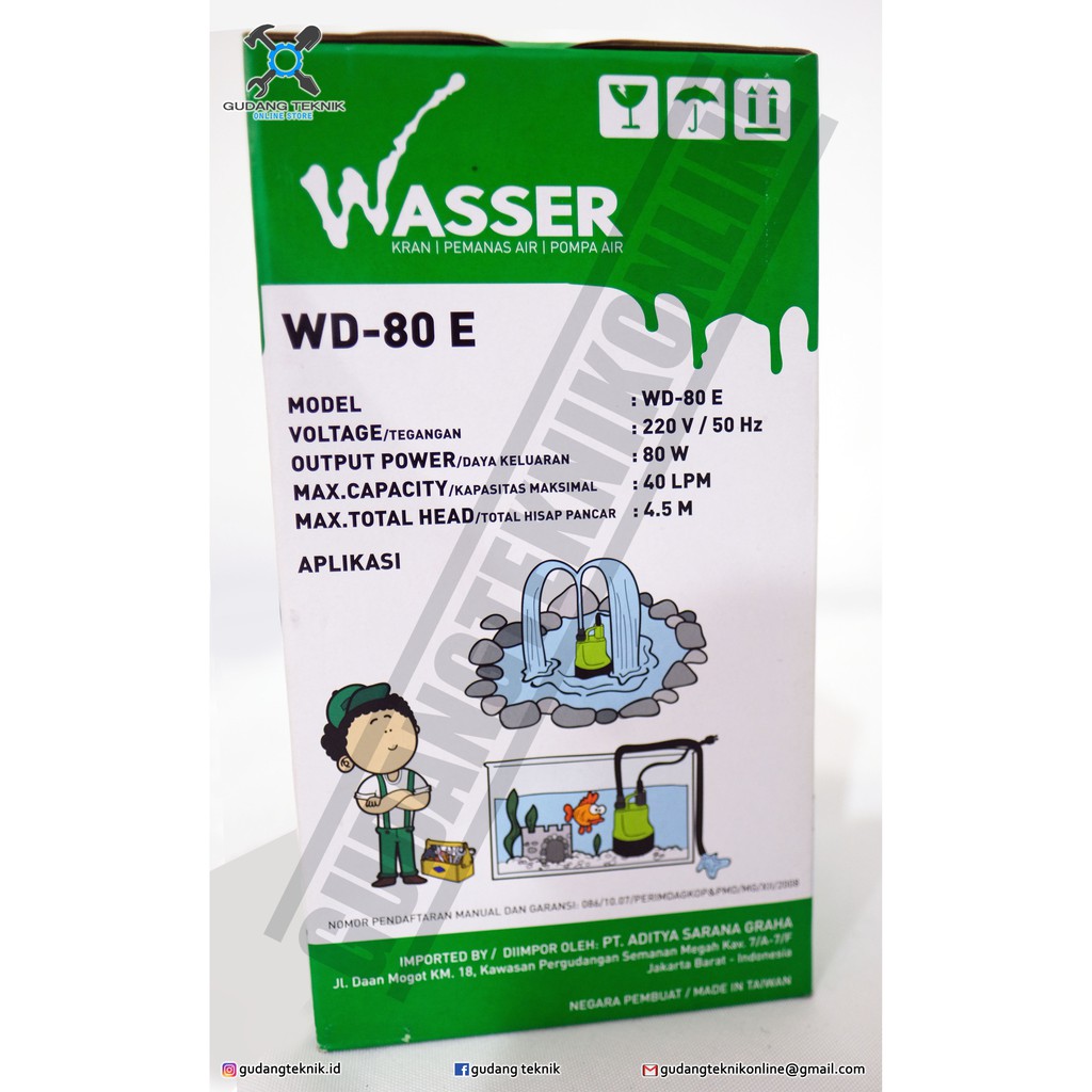 Pompa Celup Wasser WD 80 E / Pompa Submersible Wasser WD80E Pompa Taman Akuarium dan Kolam