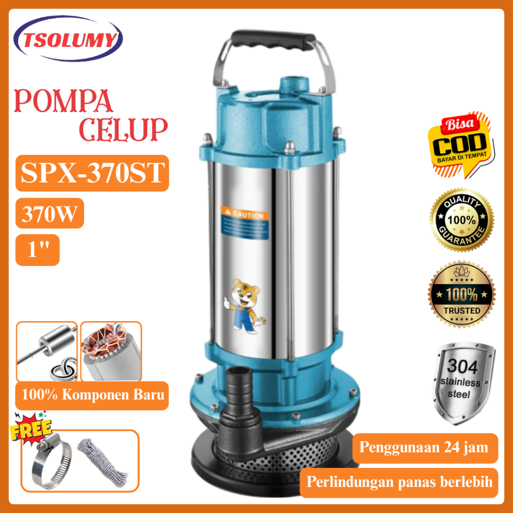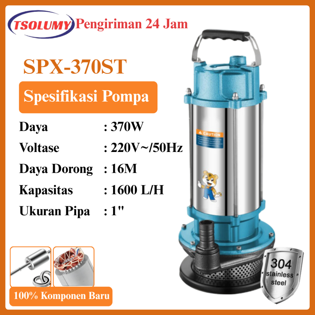 Tsolumy Pompa Celup Air Kotor SPX-370ST Blue Stainless Submersible Pump 1 Inch Pompa Kolam lkan