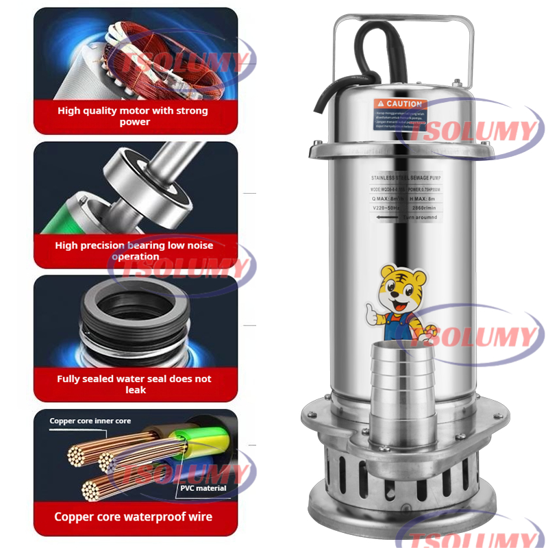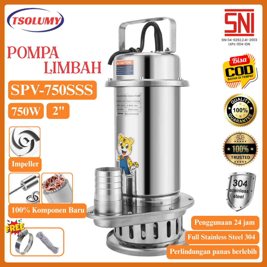 Tsolumy Pompa Celup Air Kotor SPV-750SSS Stainless Submersible 2Inch Pompa Air Laut / Pompa Tambak