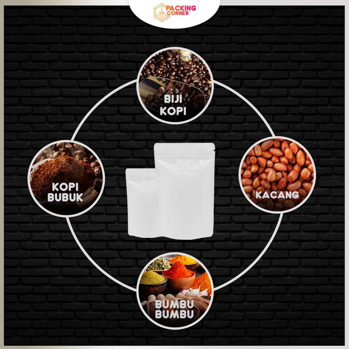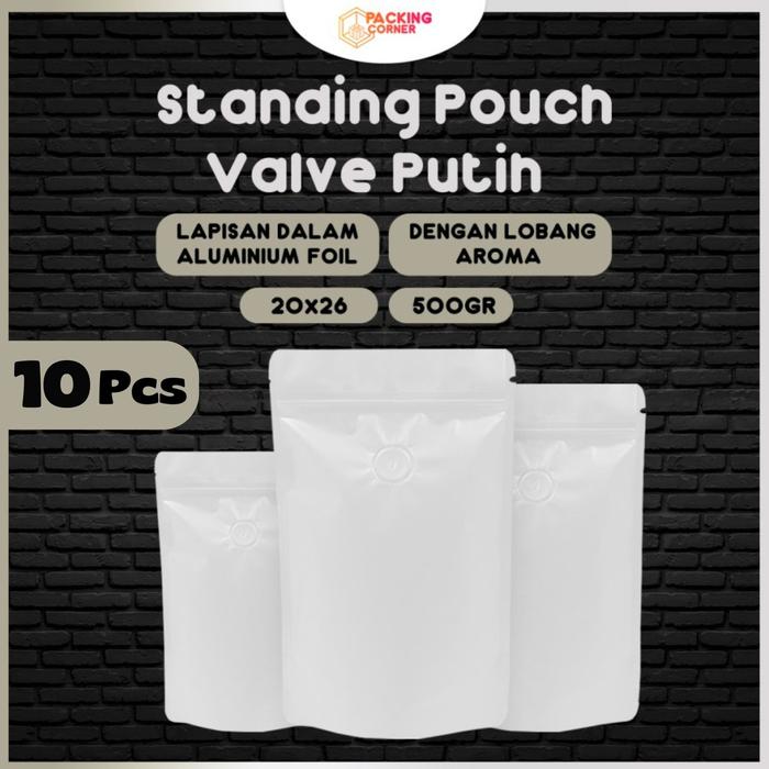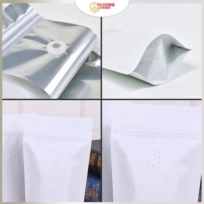 DP 0 STANDING POUCH PUTIH KERTAS VALVE 20X26 CM ALUMINIUM FOIL ZIPPER PUTIH NO VALVE