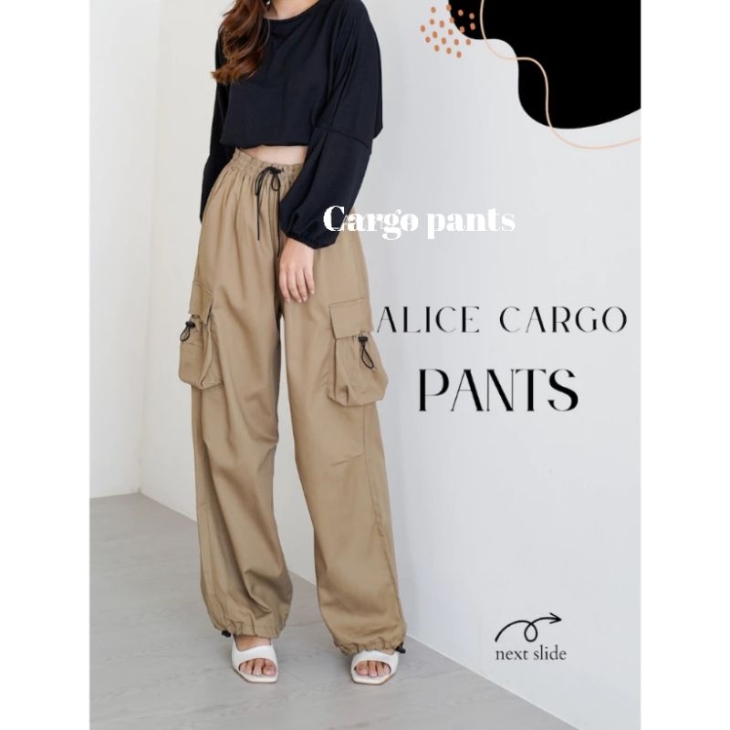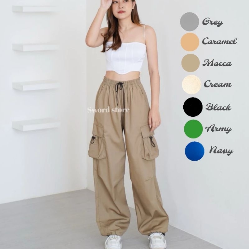 Cargo Pants Wanita Highwaist Loose Pants Korean Style Jumbo-Celana Cargo Wanita