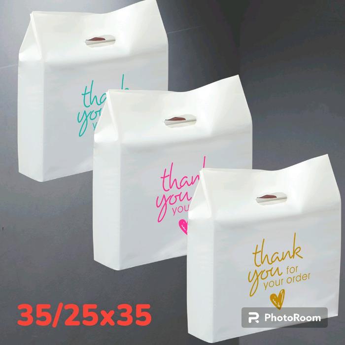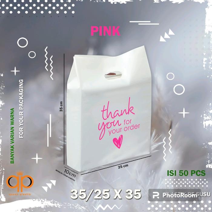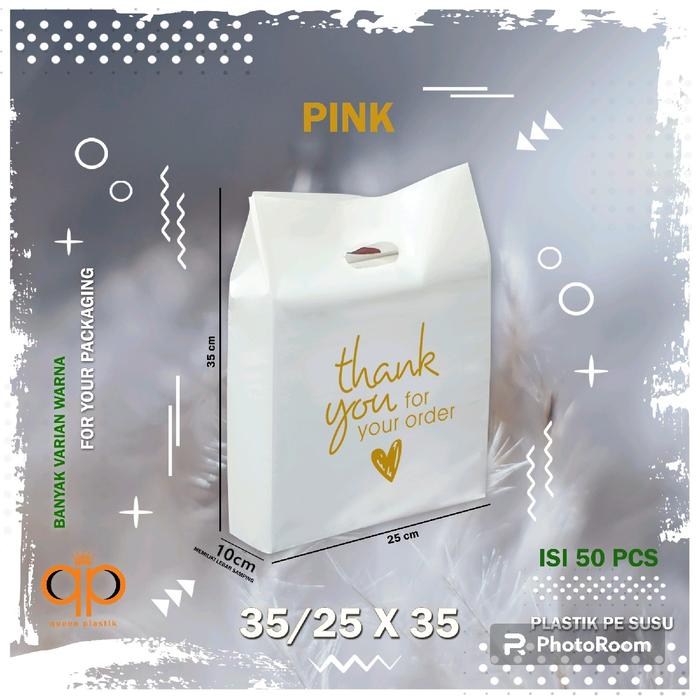 DP 0 (ISI 50PCS UK 3525X35 LIPAT SAMPING) KANTONG PLASTIK PE SUSU MOTIF THANK YOU UNTUK BOX