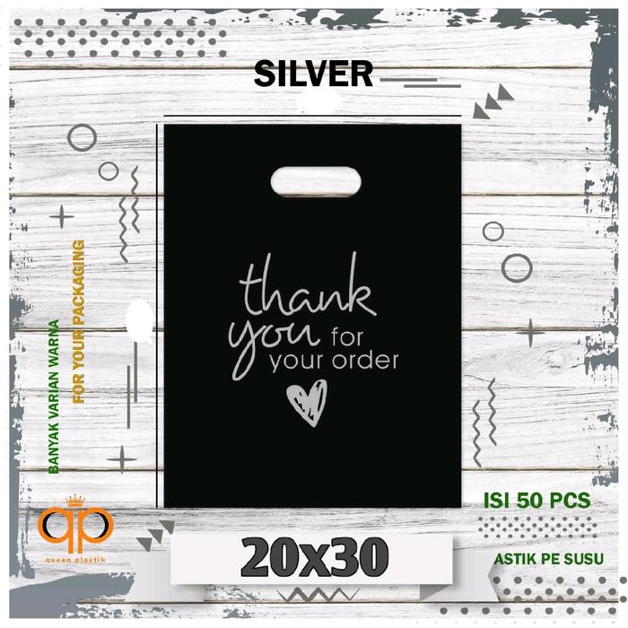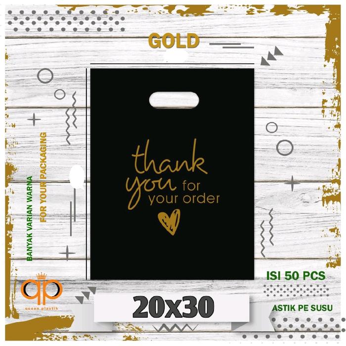 DP 0 (PE HITAM ISI 50PCS UK 20X30) KANTONG PLASTIK MOTIF THANK YOU UNTUK PAKAIAN HIJAB AKSE