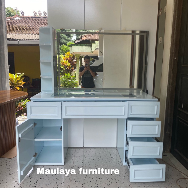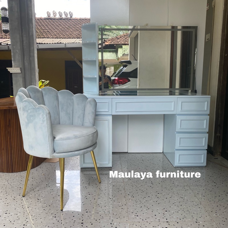 Satu Seat Meja Rias Minimalis Lampu Led + Sofa Kerang Minimalis
