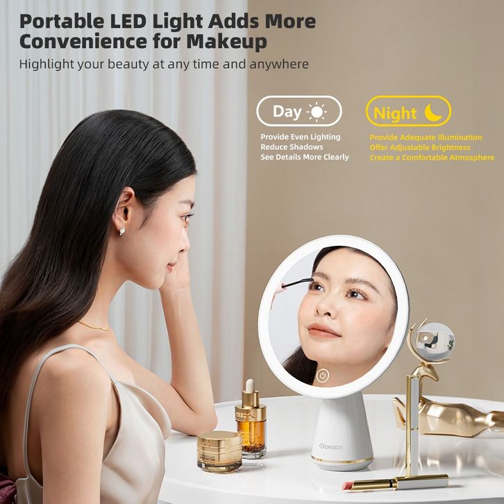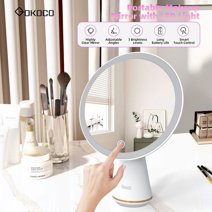 GOKOCO Portable Makeup Mirror with LED Light | 360 degree Circural Light and 3 Adjustable Brightness Levels