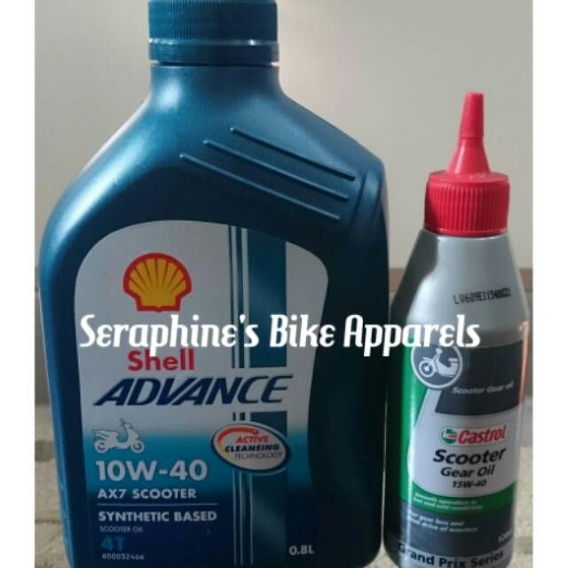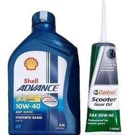 PAKET OLI MATIC SHELL ADVANCE AX7 10W40 0.8L + CASTROL GEAR OIL 120ML HONDA YAMAHA SUZUKI VESPASYM