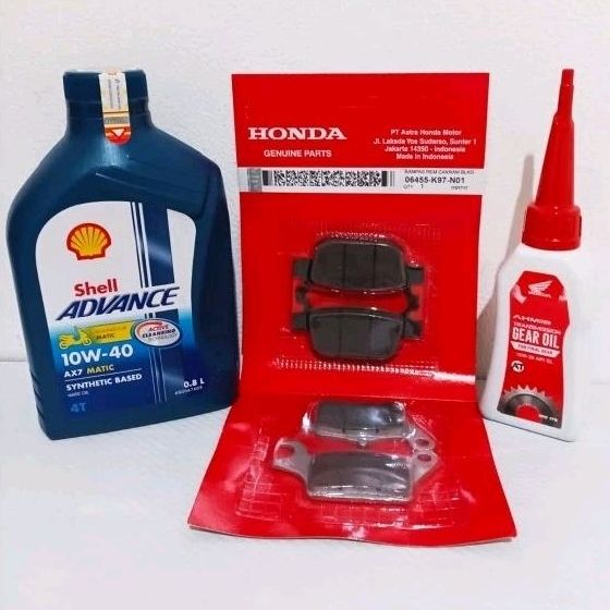 PAKET HONDA VARIO 160 ABS OLI SHELL ADVANCE AX7 SCOOTER 800ML + OLI AHM GEAR + 1 SET BRAKE PAD DEPAN