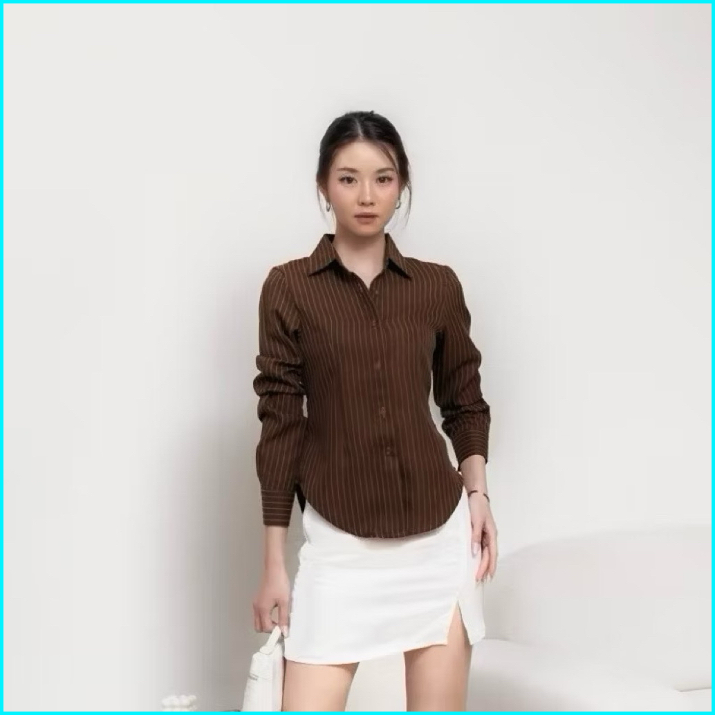 Luna Stripe - Kemeja Wanita Lengan Panjang Garis Garis Kekinian Terbaru Kemeja Kerja Fitted Shirt