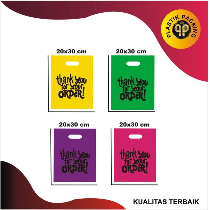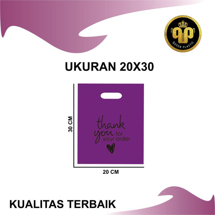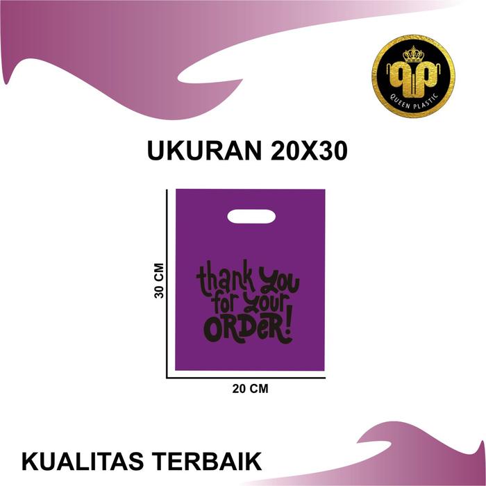 DP 0 PE WARNA (ISI 50 PCS 20X30) KANTONG PLASTIK MOTIF THANK YOU PE UNGU 20X30
