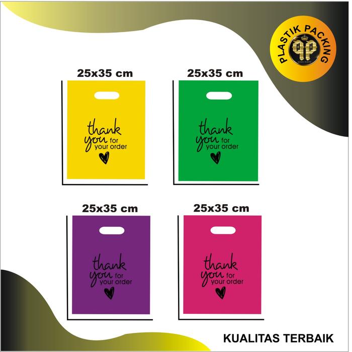 DP 0 PE WARNA (ISI 50 PCS 25X35) KANTONG PLASTIK MOTIF THANK YOU PE UNGU 25X35