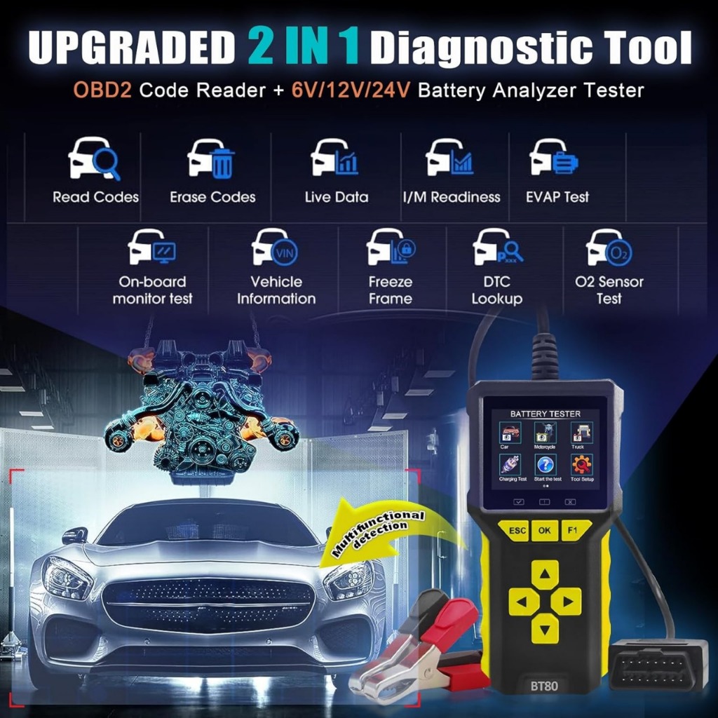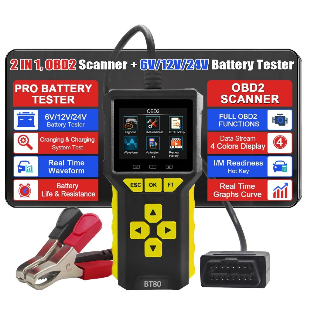BT80 2 IN 1 OBD2 II Scanner Mobil dan Battery Baterai tester Pembaca Cek Kode Diagnostic OBD 2 BT 80 BT-80 Error Code Ch