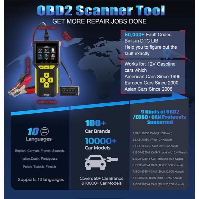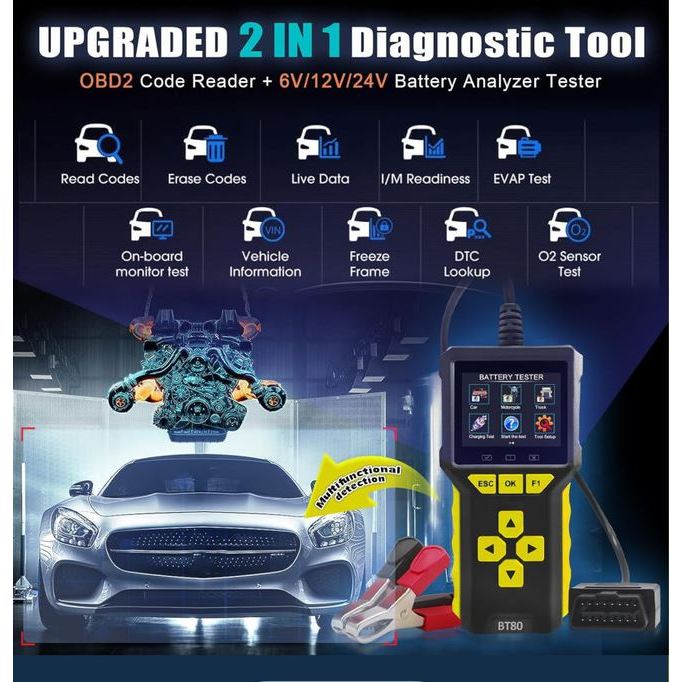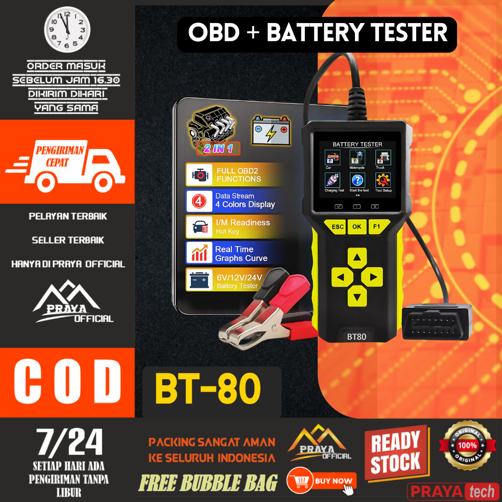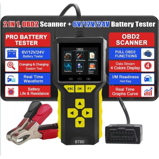 NEW BT80 2 In 1 OBD2 Scanner Battery Tester Check Engine Mobil Scanner Baterai Mobil