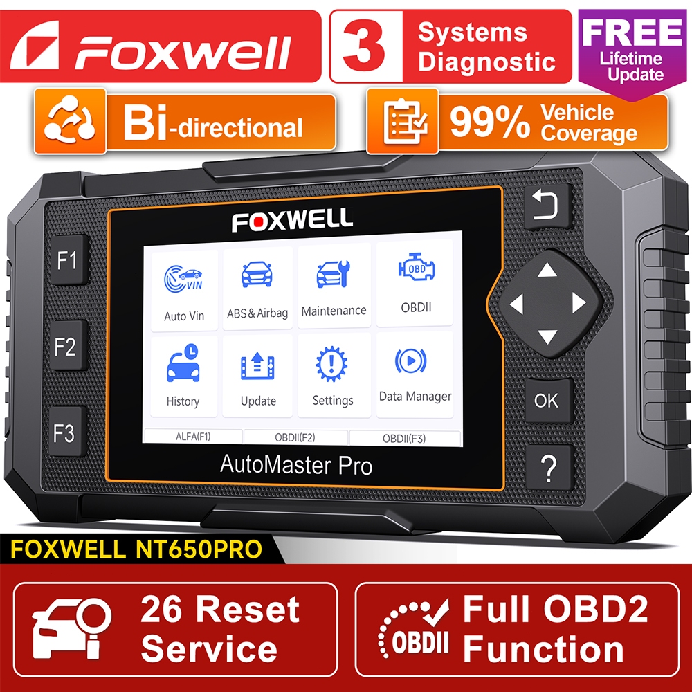 Foxwell NT650 Pro Bidirectional ABS SRS Code Reader Obd2 Scanner Car Diagnostic Tool 26+ Reset Fault Code Clear Turn Off