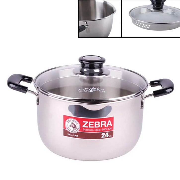 Zebra Cesar Sauce Pot 24cm with Glass Lid SUS-304 stainless steel Panci Saucepot Tutup Kaca