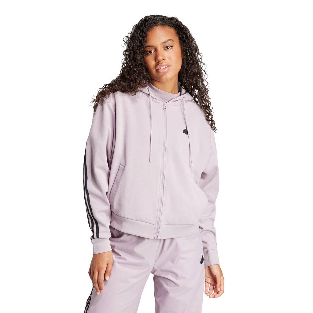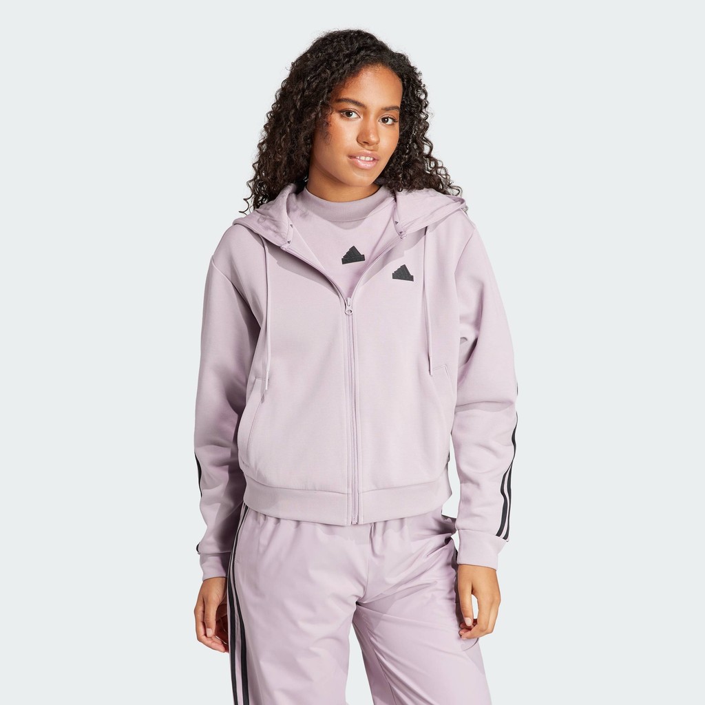 ADIDAS LIFESTYLE FUTURE ICONS 3-STRIPES FULL ZIP HOODIE WOMEN GREY IS3681