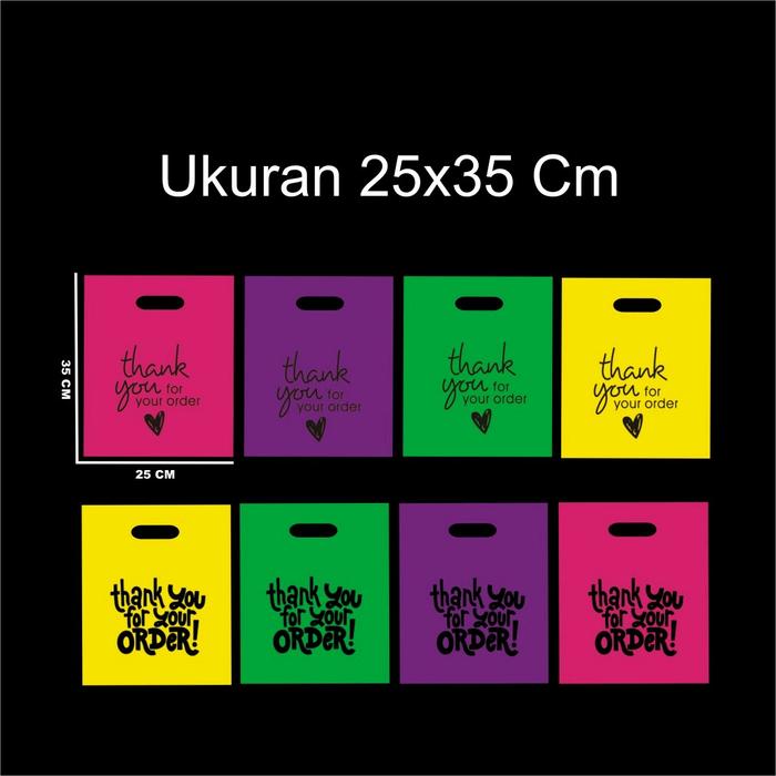 DP 0 PE WARNA WARNI (ISI 50PCS UK 25X35) KANTONG PLASTIK MOTIF THANK YOU UNTUK BAJU HIJAB C