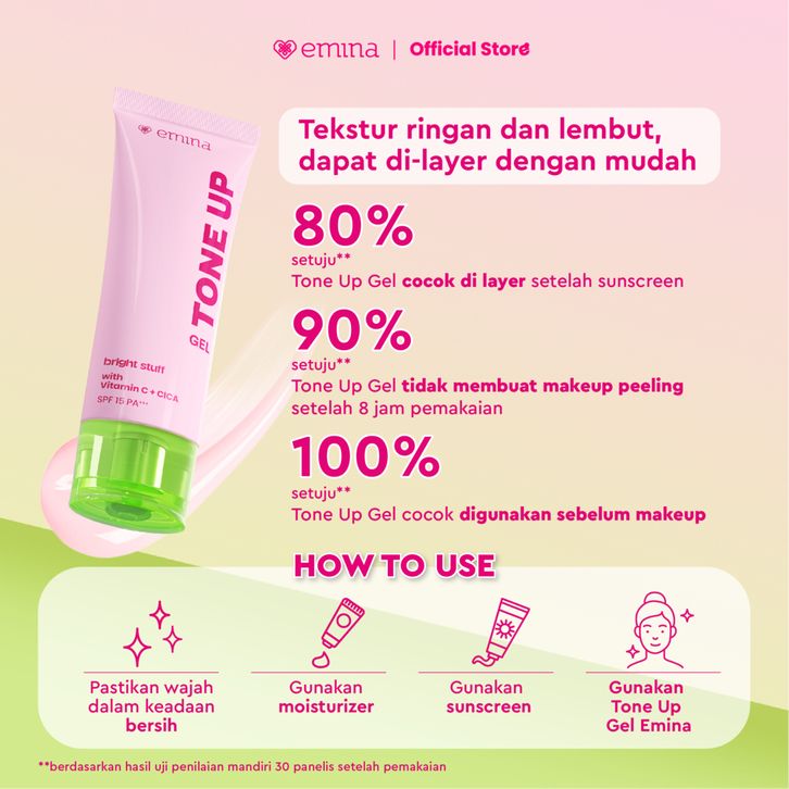 NEW! Emina Tone Up Cream Gel 20 ml - Instan Mencerahkan Kulit, Efek Tone-up Glowing Skin, UV Protection SPF 15, No White