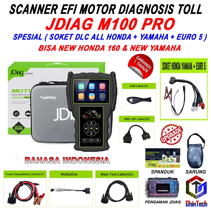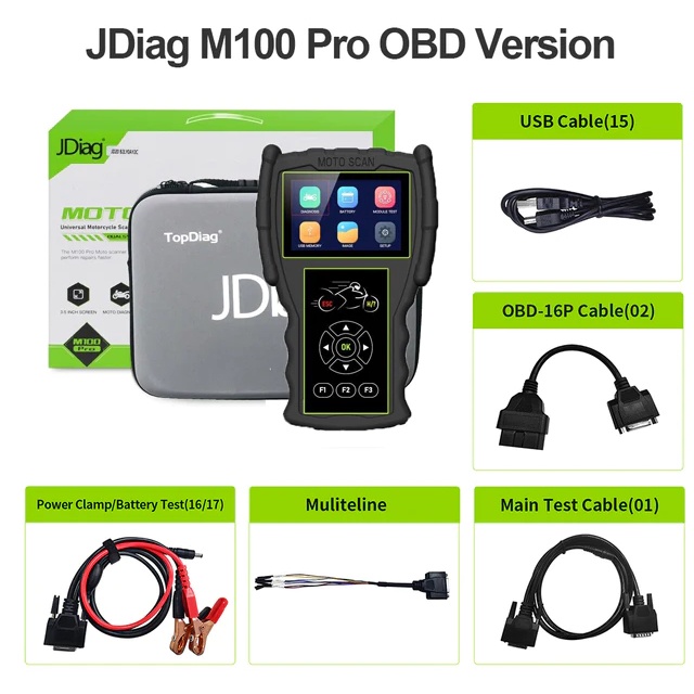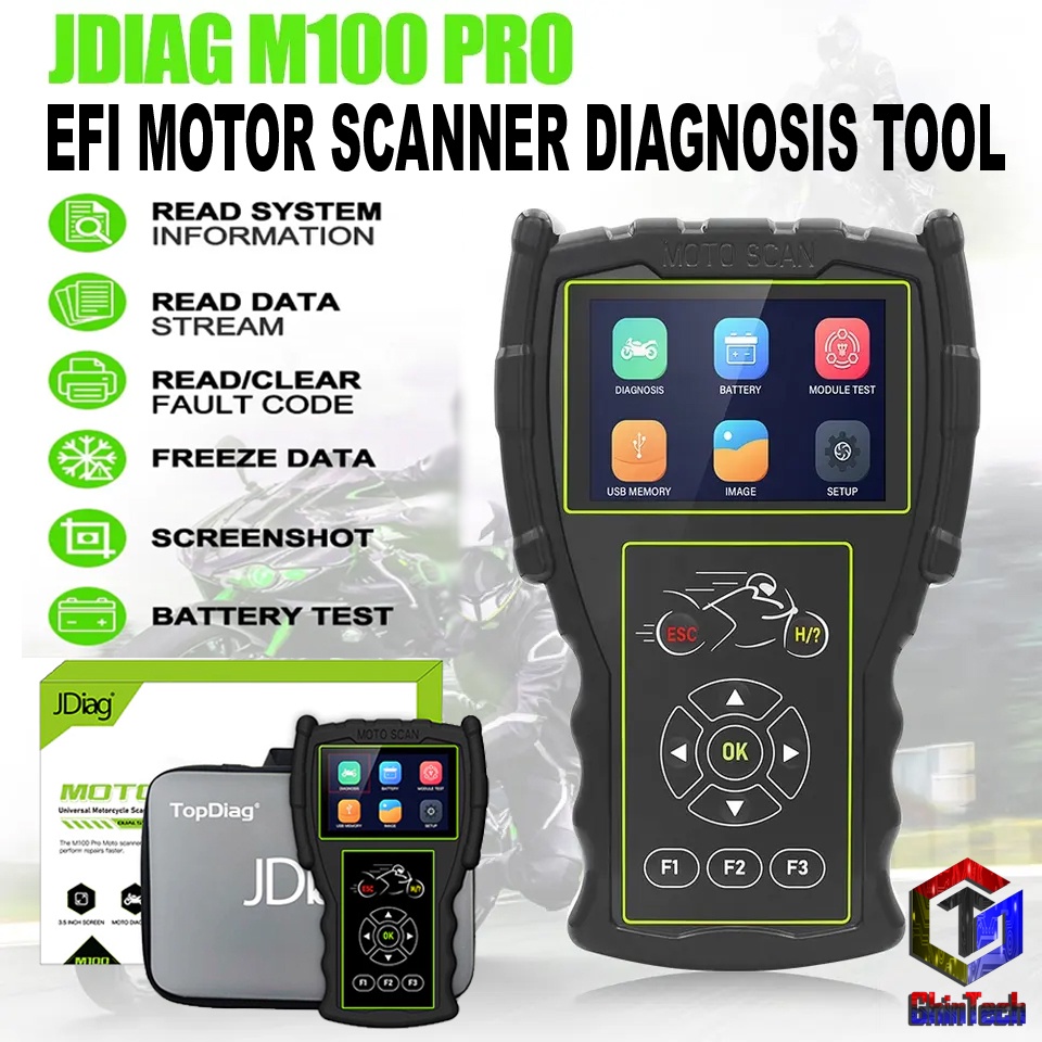 JDiag M100 PRO Scanner Sepeda Motor Function Diagnostic Tool Diagnosis ECU Reset CO Injeksi OBD2