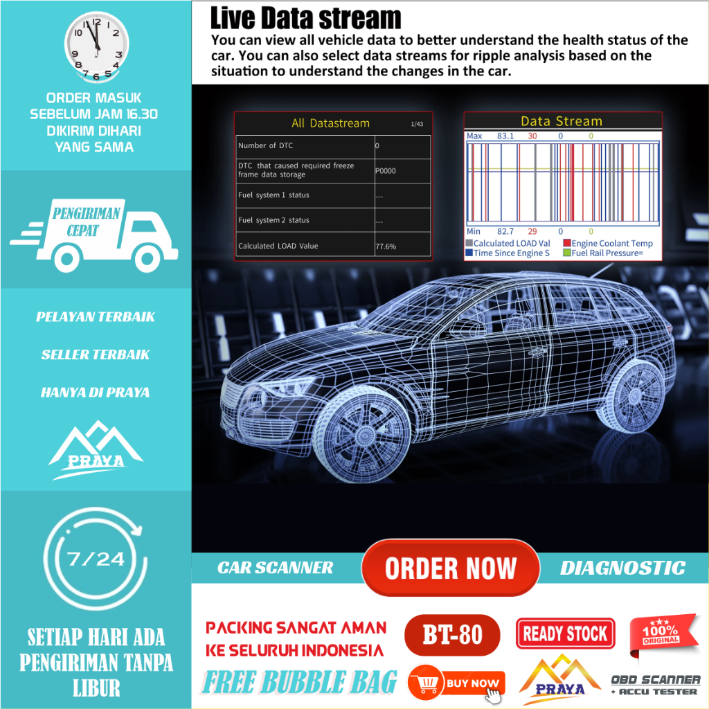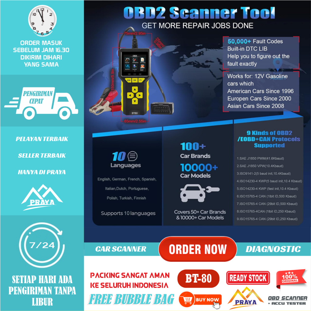NEW!! BT80 2 In 1 OBD2 Scanner Battery Tester Check Engine Mobil Code Reader 6V 12V 24V
