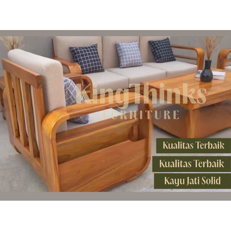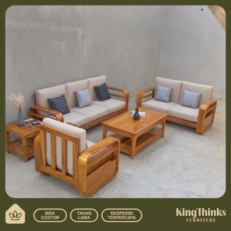 Kursi Meja Ruang Tamu Mewah Kayu Jati +Sofa Model Oval Kuat, Living Room Chair